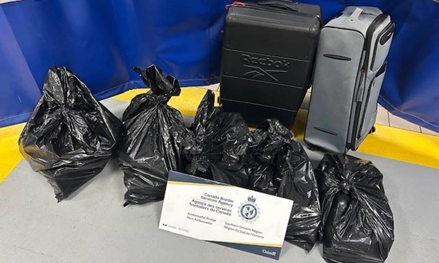 During a secondary examination of the trailer, CBSA officers discovered 2 suitcases and 5 garbage bags containing 161 bricks of suspected cocaine. The approximate value of the cocaine is $23.4 million.