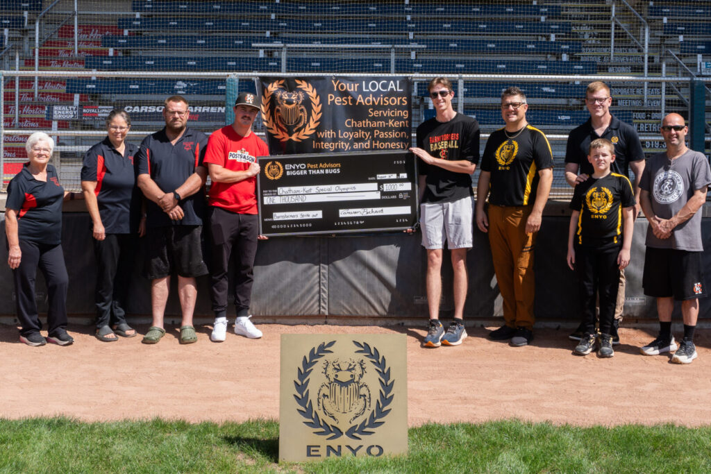 Chatham-based Pest control company, Enyo Pest Advisors, helped the local IBL team kick off the season by pledging to donate $3.00 from every strikeout at home games during the 2025 season, with proceeds going to support Chatham-Kent Special Olympics, including youth swimming and soccer.
