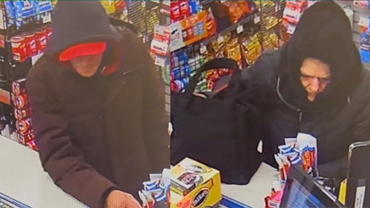 The first suspect is believed to be female and was last seen wearing all black clothing with a hood. The second suspect is a male and was seen wearing a jacket, a blue hooded sweater and a red baseball cap. Photos of the suspects from security footage can be viewed above.