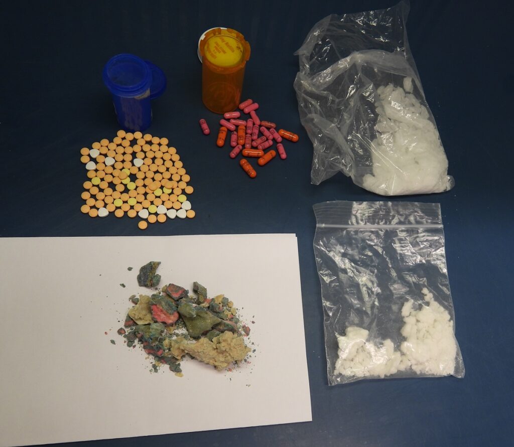 During a search of the two pickup trucks and the residence, officers seized 63 grams of fentanyl, 15 grams of cocaine, 35 grams of methamphetamine, over 100 capsules of hydromorphone, and 3.5 capsules of Buprenorphine with an estimated street value of $17,365. Police also seized digital scales, a large quantity of Canadian currency, and two BB handguns.