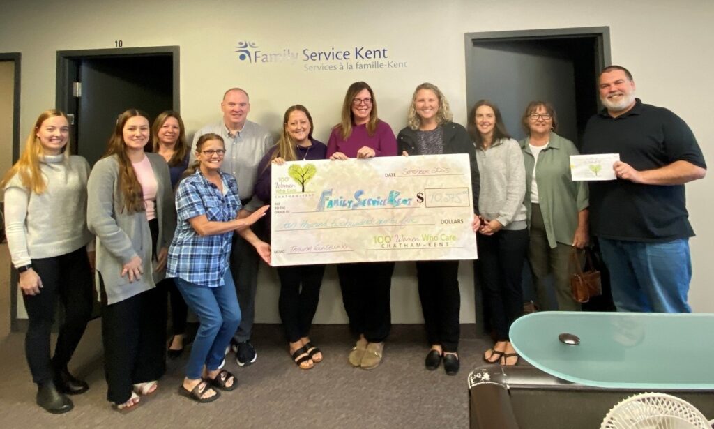 100+ Women Who Care Chatham-Kent recently presented Family Service Kent with a donation of $10,275, proceeds from their August meeting.